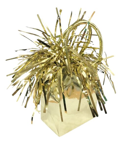 This 6 pack of gold giftbag shaped balloon weights is perfect for any party!