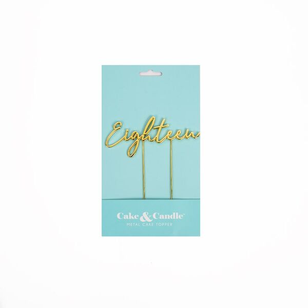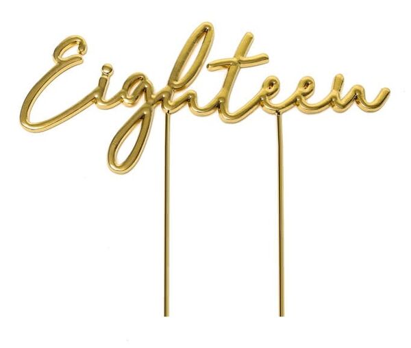 Measuring 12cm wide, this topper is made from metal and features 'Eighteen' wording in a delicate cursive font.