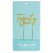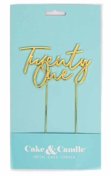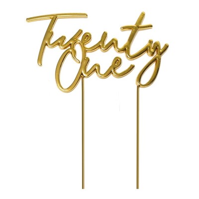Measuring 10cm wide, this topper is made from metal and features 'Twenty One' wording in a delicate cursive font.
