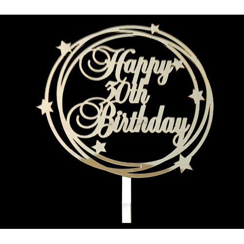 This gold acrylic 'Happy 30th Birthday' cake topper is the perfect finishing touch for that special cake!