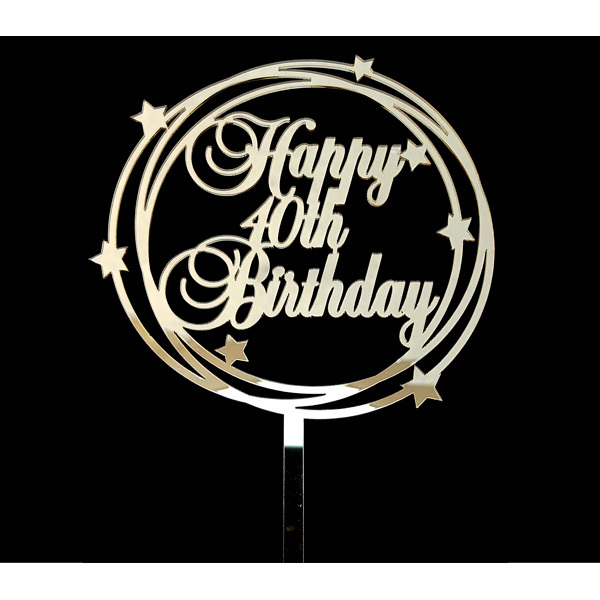 This gold acrylic 'Happy 40th Birthday' cake topper is the perfect finishing touch for that special cake!