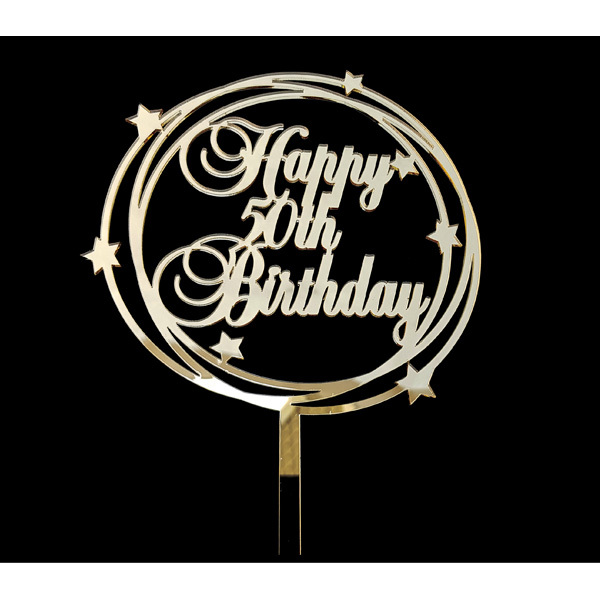 This gold acrylic 'Happy 50th Birthday' cake topper is the perfect finishing touch for that special cake!