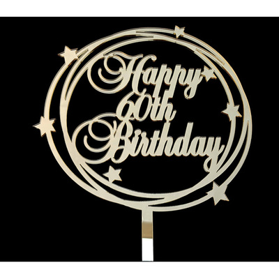 This gold acrylic 'Happy 60th Birthday' cake topper is the perfect finishing touch for that special cake!