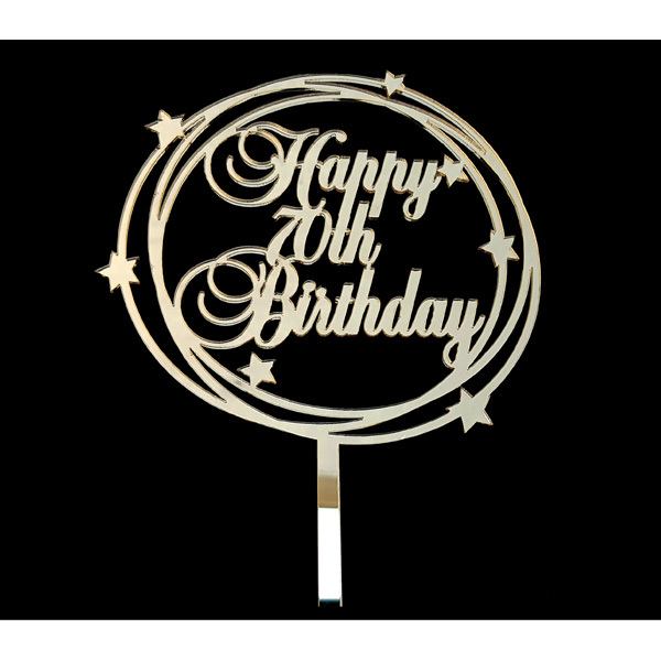 This gold acrylic 'Happy 70th Birthday' cake topper is the perfect finishing touch for that special cake!