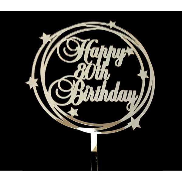 This gold acrylic 'Happy 80th Birthday' cake topper is the perfect finishing touch for that special cake!