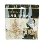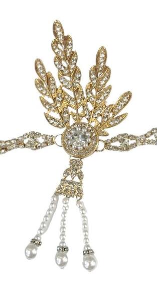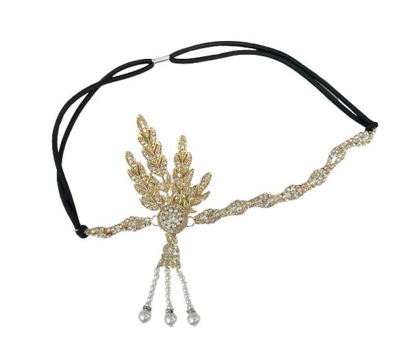 The front part of the headband measures approx. 21cm in length and is made from lustrous gold metal links adorned with faux faux gems.