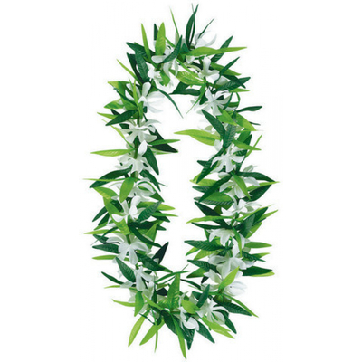 This lush white and green lei will make the perfect addition to your Hawaiian luau or tropical celebration.
