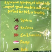 A gruesome grouping of individually wrapped gummi monsters and insects ideal for: