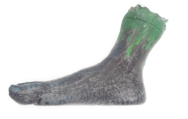 Plastic severed foot decoration, measures approx. 21cm x 17cm x 7cm.