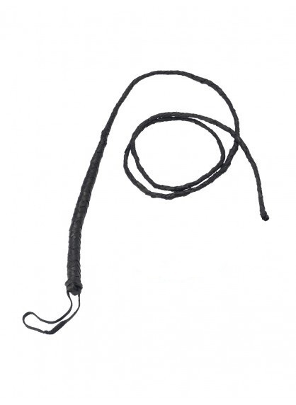 Long black bull whip, perfect for any Halloween costume! Measures approx. 182cm in total length (including handle).