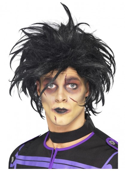 Halloween black psycho wig, designed to fit most adults. Care instructions included.