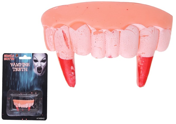 Vampire teeth, perfect for a Halloween costume! Teeth can be cut to better fit. Measure approx. 5cm in length.