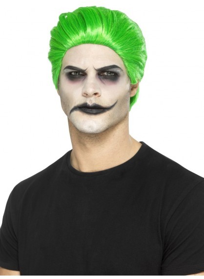 Slick trickster green wig, designed to fit most adults. Care instructions included.