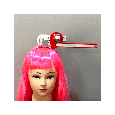 Headband with plastic 'blood stained' wrench, perfect for any Halloween celebration! Designed to fit most adults.