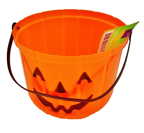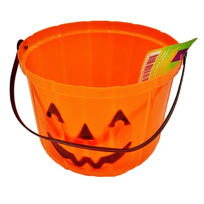 Collect up your candy this Halloween in this adorable orange plastic pumpkin pail!