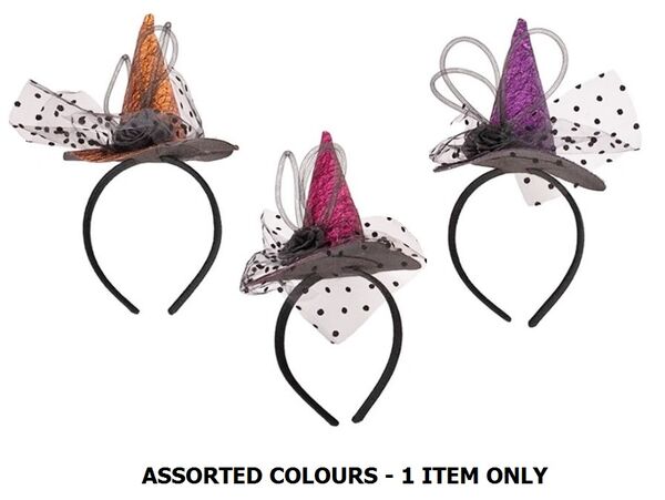 The headband is features a glittery lacy mini witch hat with tulle and feather accents and is perfect for parties, trick-or-treating or getting into the Halloween spirit!