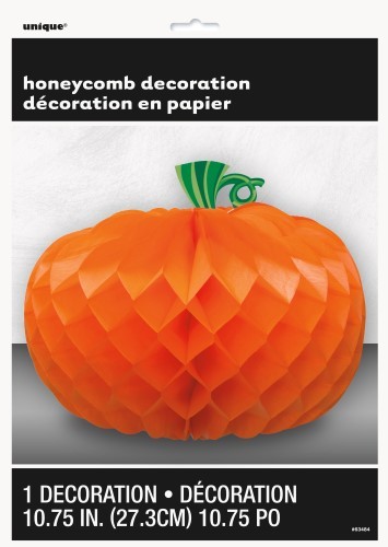 Pumpkin honeycomb centrepiece decoration, measuring approx. 27.3cm in height.