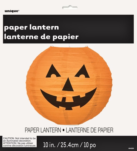 This cute decoration has an orange paper shell with black face details over a wire frame.