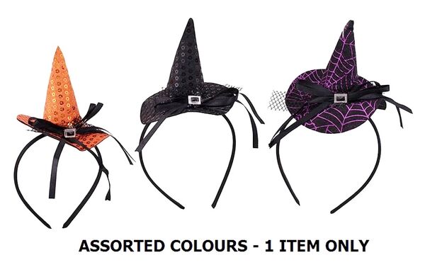 The headband is features a glittery sequin mini witch hat with ribbon accents and is perfect for parties, trick-or-treating or getting into the Halloween spirit!