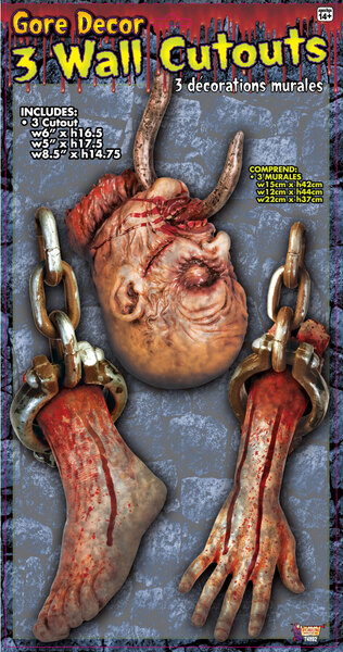 Severed body part cardboard cutout wall decorations, perfect for any Halloween celebration! Three decorations in a pack, which can each be stuck to a wall using tape or blu-tac.