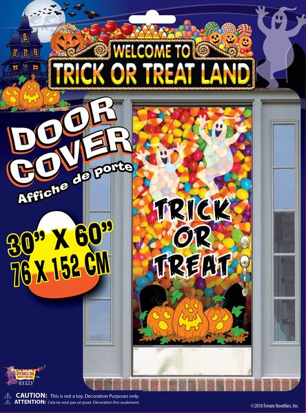 Plastic door cover decoration, perfect for a Halloween themed party! Decoration measures approx. 76cm x 152cm. Can be attached using blu-tac or tape.