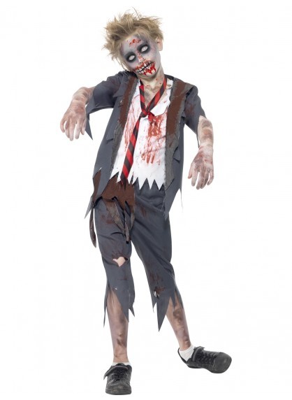 This child zombie school boy costume is perfect for any Halloween celebration! This costume includes trousers, jacket, mock shirt and tie. Costume is a size medium (7-9 years old.) Easily coordinated with the rest of our Halloween themed costume supplies to ensure that the costume is one to remember!