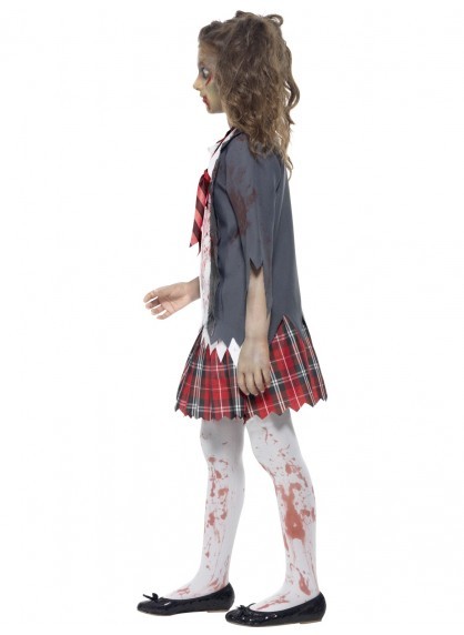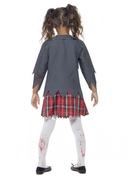 This child zombie school girl costume is perfect for any Halloween celebration! This costume includes tartan skirt, jacket, mock shirt and tie. Costume is a size medium (7-9 years old, 130-143cm in height.) Easily coordinated with the rest of our Halloween themed costume supplies to ensure that the costume is one to remember!