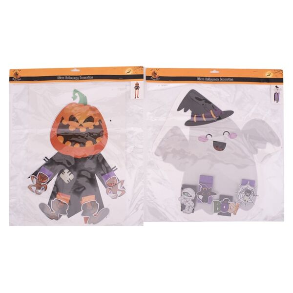 The decoration features a double sided cardboard cutout with dangling arms & legs or fun mini cut-outs and measures approx. 31-39 cm (w) x 90cm (l)