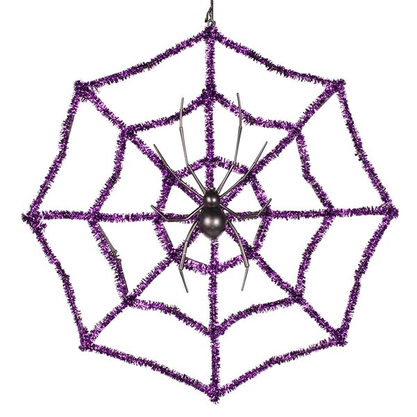 Made from flexible plastic and trimmed with purple tinsel, this decoration is sure to add to your spooky atmosphere.