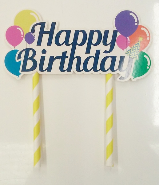 'Happy Birthday' cake topper decoration, perfect for any birthday cake! Decoration measures approx. 14cm in height (including sticks that go in cake) and 'Happy Birthday' measures approx. 14cm x 6cm.