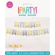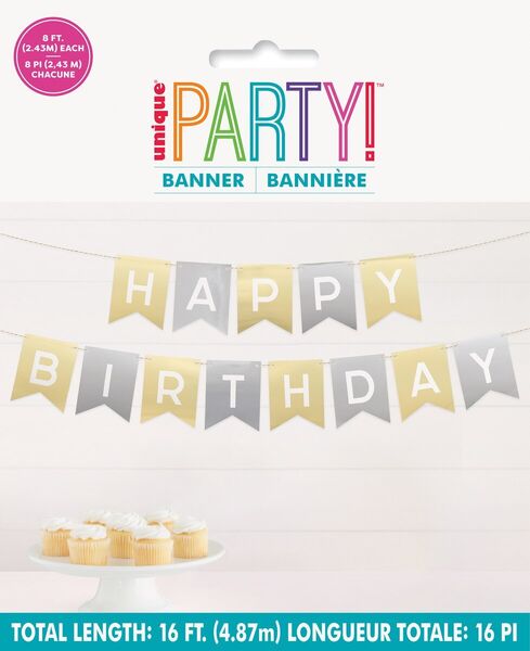 Featuring classic gold & silver colouring, these pennant banners bodly spell out ' HAPPY BIRTHDAY' and will make a fabulous addition to your party decor - display at the party entrance, within your party space or team with some balloons and a backdrop for an awesome photo booth!