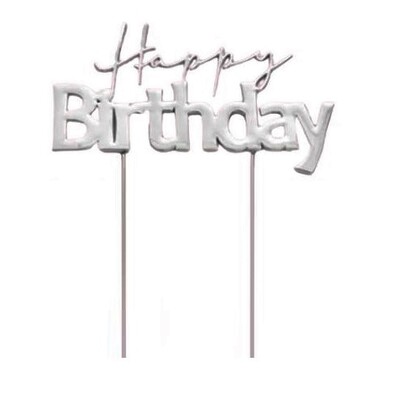 Measuring an impressive 12.5cm wide, this topper is made from metal and features 'Happy Birthday' wording.