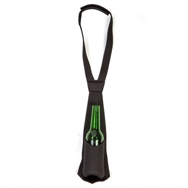 The tie fits easily under your collar with a hook and loop fastening strap, and is made with soft neoprene to keep your beer extra cold.