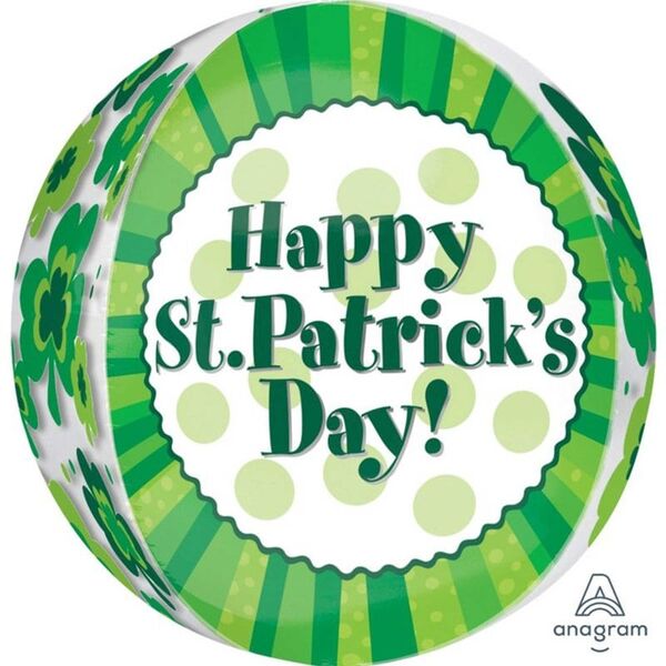 This balloon is as round as a beach ball when inflated and features a Happy St Patrick's Day message on the front & back and 2 see-through panels on the sides highlighted with colourful shamrocks.