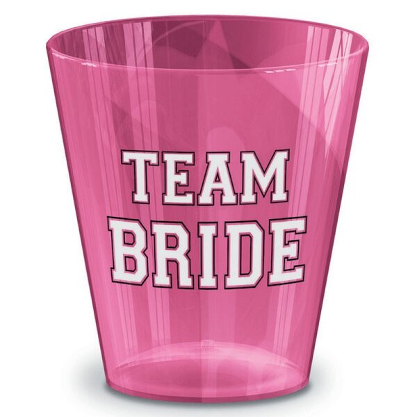 Pack of 40 Team Bride pink plastic shot glasses - perfect for any Hen's Night celebration! Each shot glass can hold approx. 59ml of liquid.