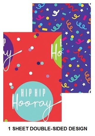 Featuring Hip Hip Hooray & confetti designs, this double-sided gift wrap is ideal for birthdays and special occasions.