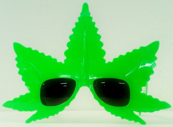 Marijuana party glasses, perfect for any hippie costume! Designed to fit most adults.