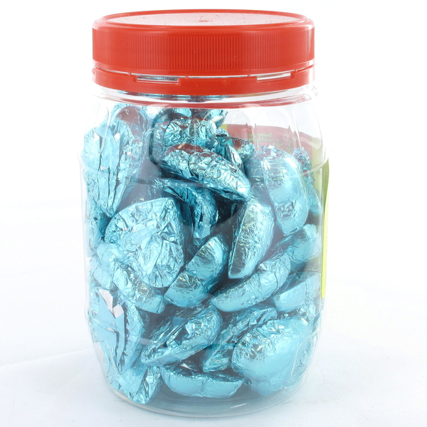 These milk chocolate hearts with ice blue foil wrapping are perfect for any occasion, especially weddings and engagement celebrations! With 500g in each pack (approx 50 hearts in jar), each individual heart measures approx. 3cm x 3cm and tastes absolutely delicious! Sure to be loved wherever they’re served!