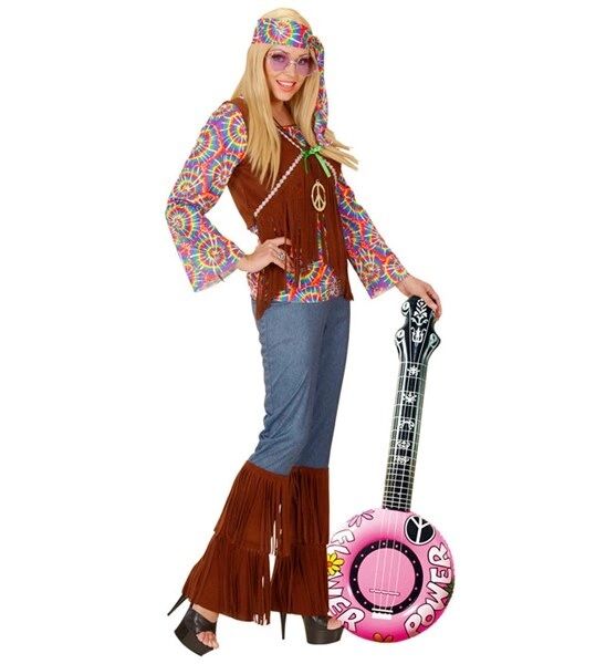 Decorated with peace symbols, groovy flowers and 'Flower Power' slogan, this banjo is perfect to use as a party decoration, costume accessory or photo prop for your 1960s hippie, Flower Power or music themed party.