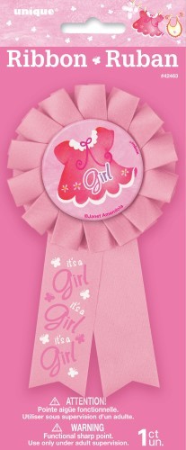 It's a girl pink award ribbon. Ribbon measures approx. 13cm in total height, round part measures approx. 7cm in diameter. Ribbon has safety pin on the back.