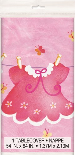 It's A Girl pink baby shower plastic tablecover, measuring approx. 137cm x 213cm.