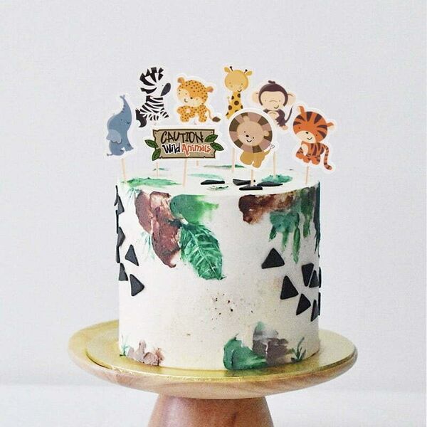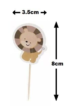 These toppers measure approx. 8cm tall and feature fun designs, including range of wild animals and a Caution sign, on wooden picks.