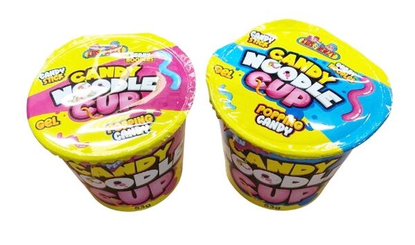 Peel back the top of the mini noodle cup to reveal a mix of gummy lolly “noodles,” popping candy topping, gooey gel and candy chopsticks - lots of sweet surprises - a fun and whimsical treat for kids and candy lovers alike.