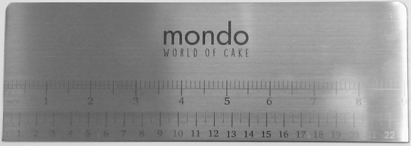 Stainless steel buttercream & ganache scraper, perfect for smoothing buttercream and ganache before fondant is applied. Helps to create sharp and straight edges. Measures approx. 23cm x 8cm (scraper has measurements marked on it, too.)
