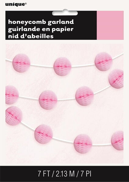 This lovely garland consists of 10 mini paper honeycomb balls attached to 2.13m/7ft of thin white ribbon.