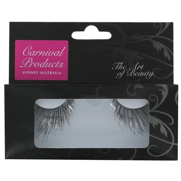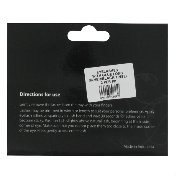 These Eyelashes have a dense outward graduation of extra-long black and silver lashes. Reusable and complete with professional grade adhesive. Simply peel off after use and place back on tray ready for next time!