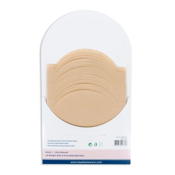 The liners are made from unbleached non-stick paper that is silicone coated on both sides with convenient 10cm extended lifting tabs on 2 sides for easy removal after baking.
