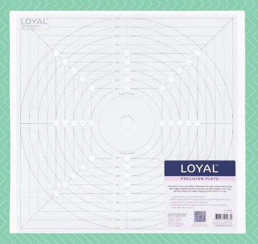The LOYAL Precision Plate is specially designed to help centre and evenly distribute support dowels in square and round cakes, ensuring perfect results for cakes ranging from 4 to 12 inches.