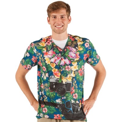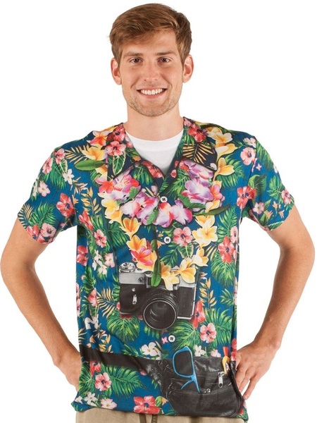 Perfect for the person who isn’t keen to wear a full costume, this shirt is your easy go-to solution! This men’s tourist shirt is comfortable to wear, easily coordinated with the rest of our costume accessories and would be a hit at any costume party! Shirt is a men’s size large.
