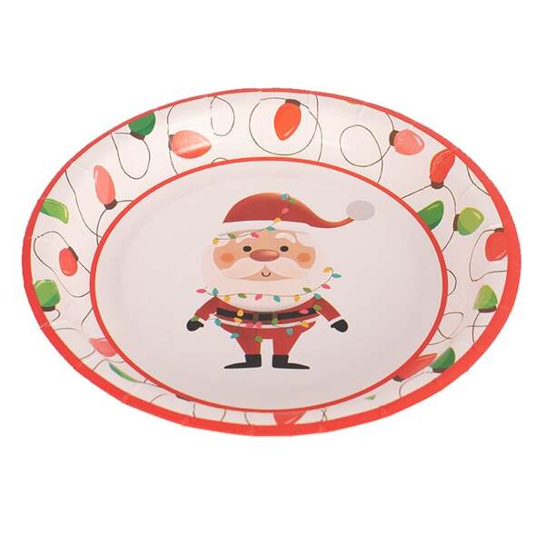 These delightful plates feature Santa in the middle surrounded by a tangle of Christmas lights
